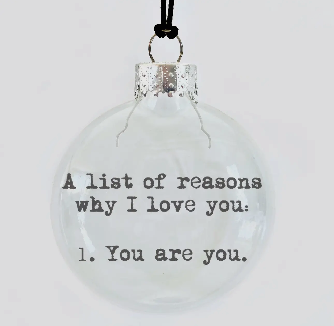 Give the gift of love this holiday season with this beautiful glass ornament! It's sure to make your loved one smile - whether a friend, family member, spouse, etc.