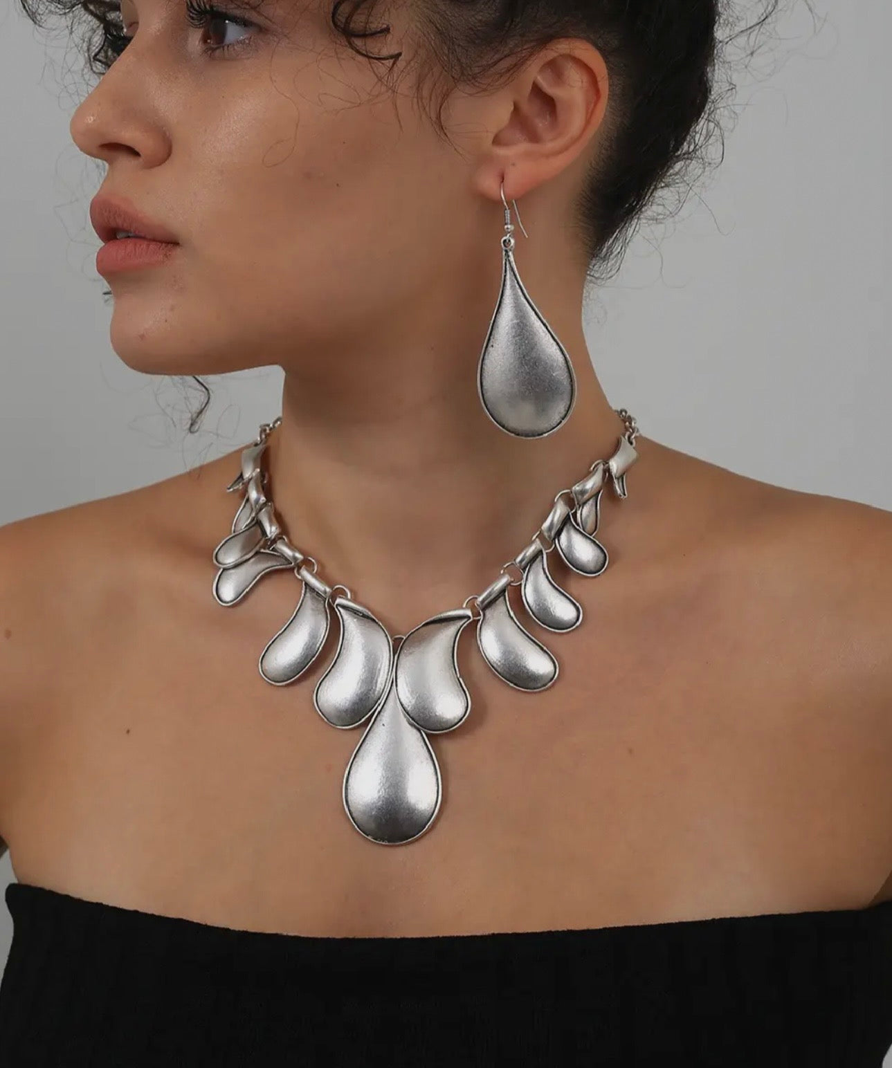 Silver Plated Necklace and Earrings Set. Special Bohemian Design.