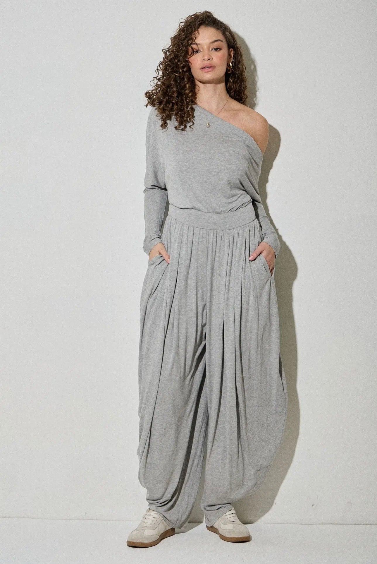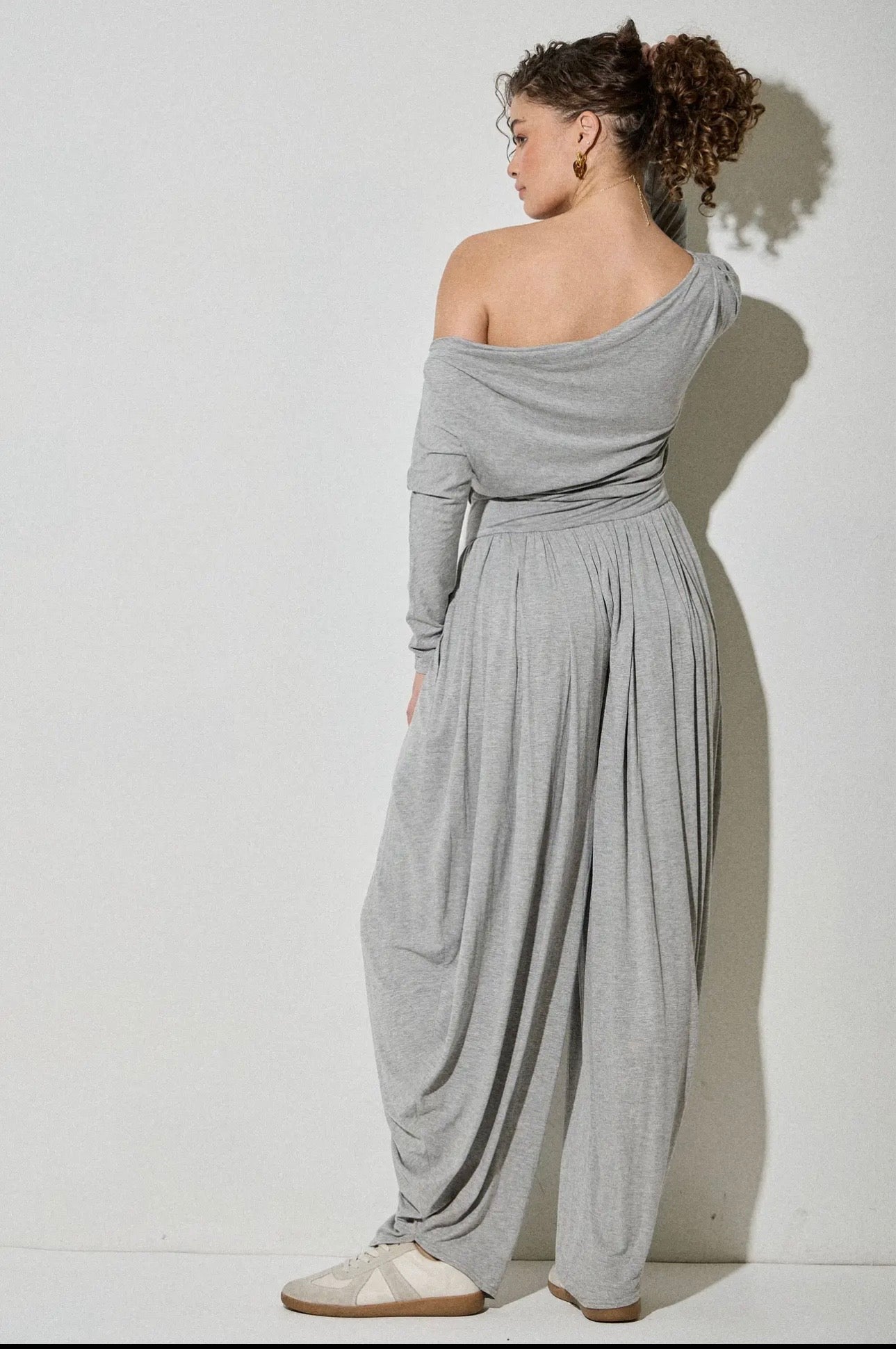 Effortless and elevated, this one-shoulder jersey jumpsuit drapes beautifully with a relaxed silhouette, perfect for day-to-night comfort and chic appeal.