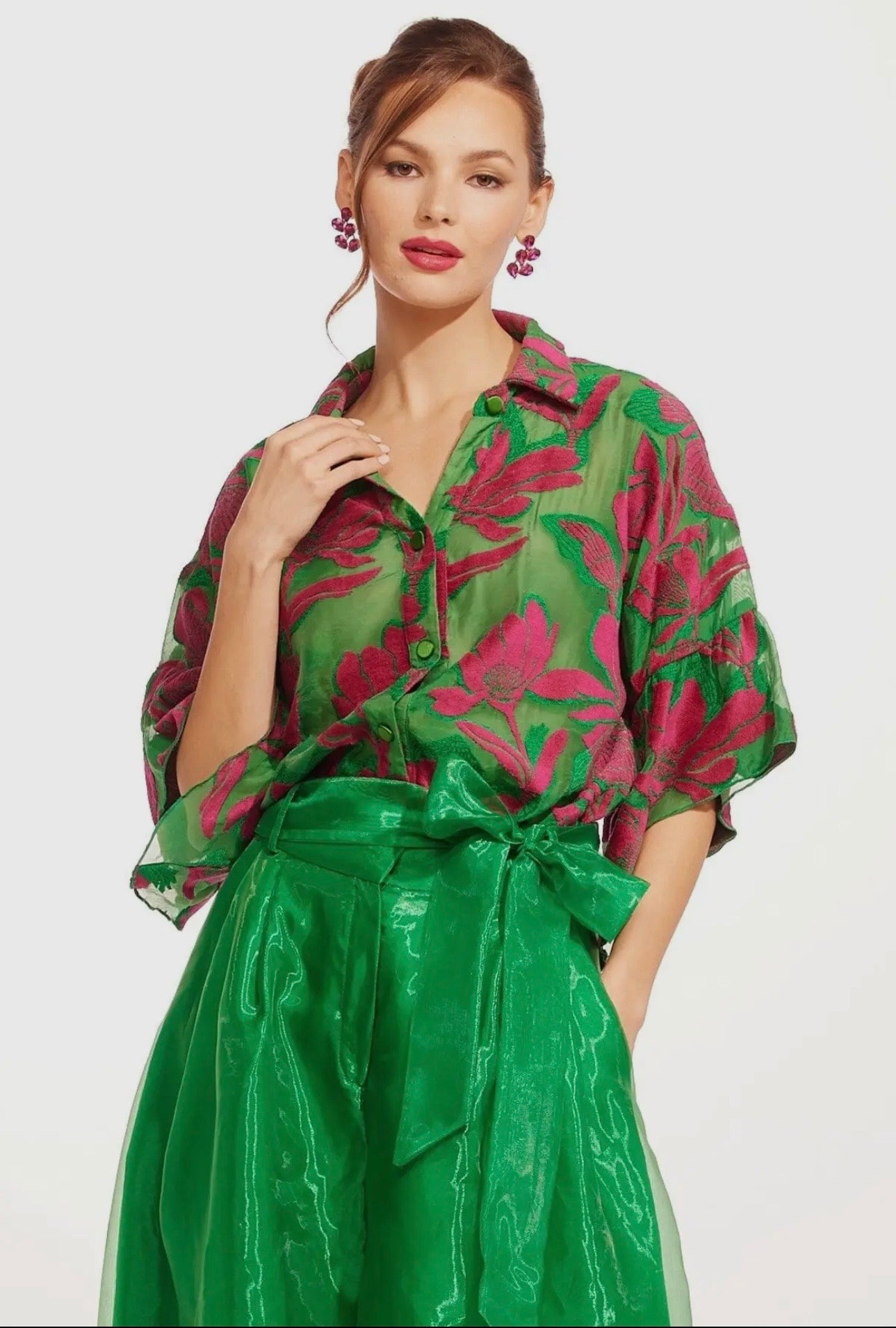 With its collared neckline, half bell sleeves, and front buttons, you can mix and match the relaxed fit for any occasion.