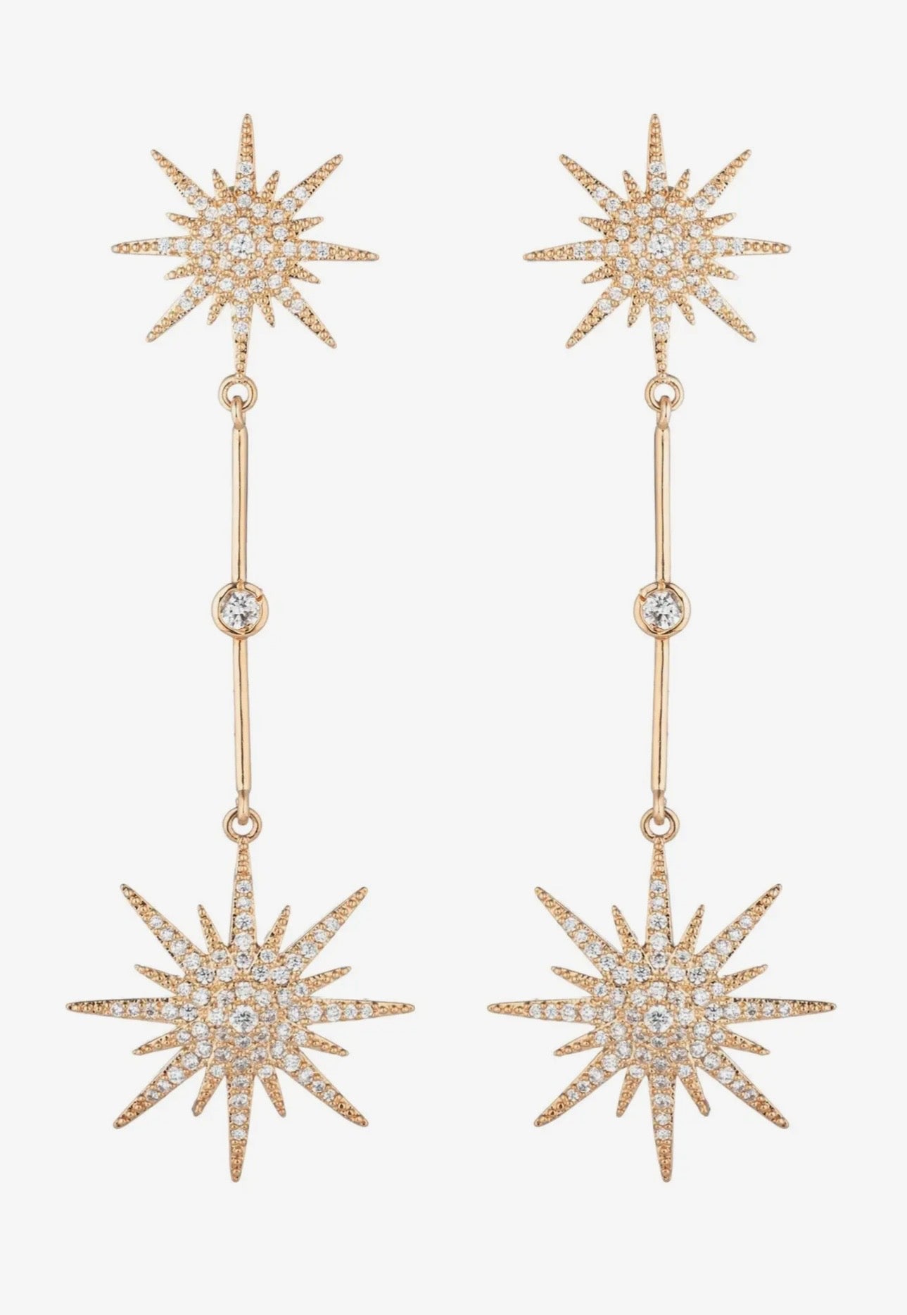 The North Star won't be the brightest star in the night when you have these celestial earrings on! Embodied with CZ crystals, these drop earrings feature a North Star design on gold tone brass. These earrings will make everyone look at you in awe.