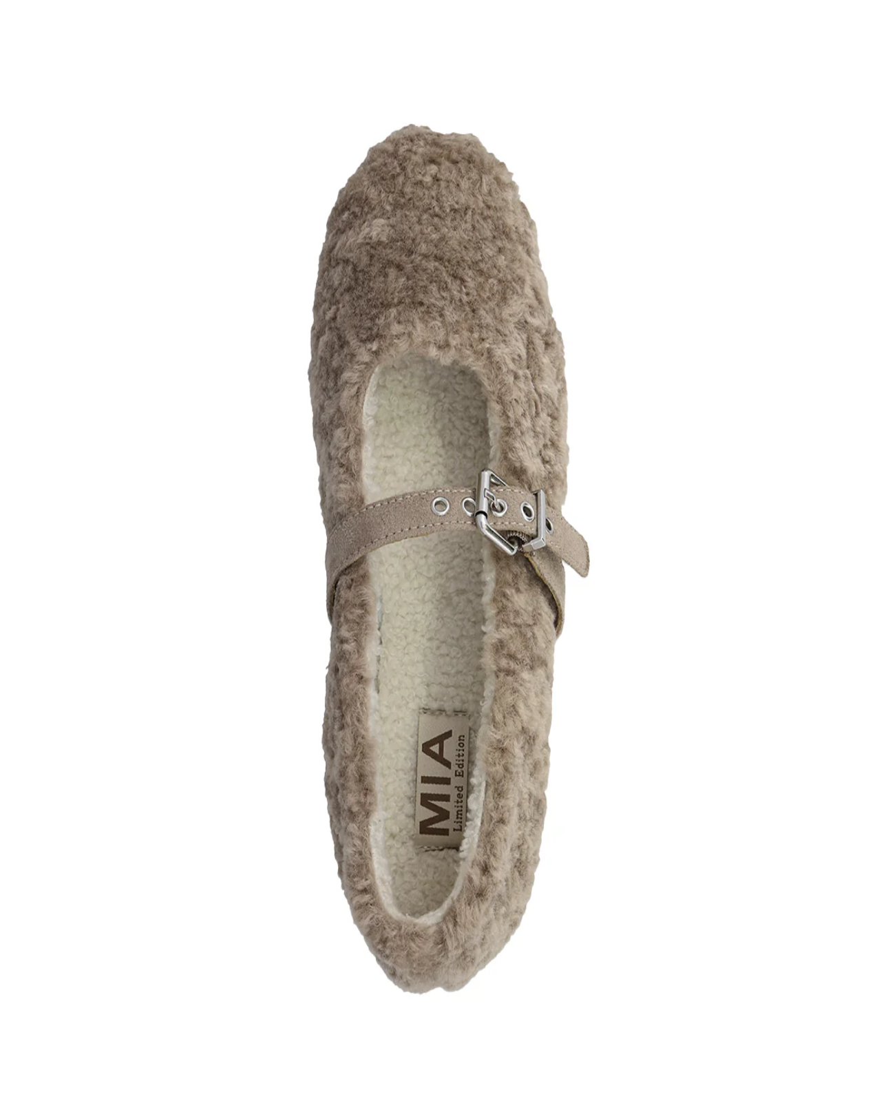 Sink into luxury with Kayti. Crafted from plush faux shearling, this Mary-Jane flat feels like a warm hug.