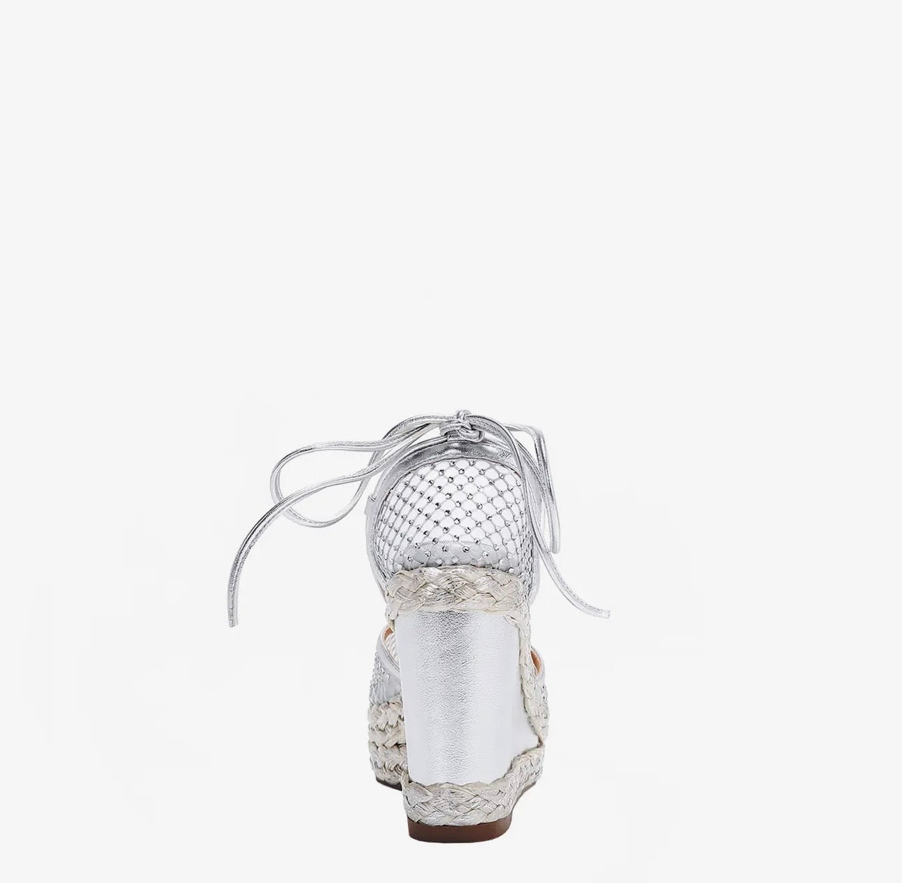 Make a lasting impression with this polished pair. Ideal for elevating your casual outfits, the Maya sandal features a refined rhinestone mesh toe cap and a braided trim platform that lifts the look.