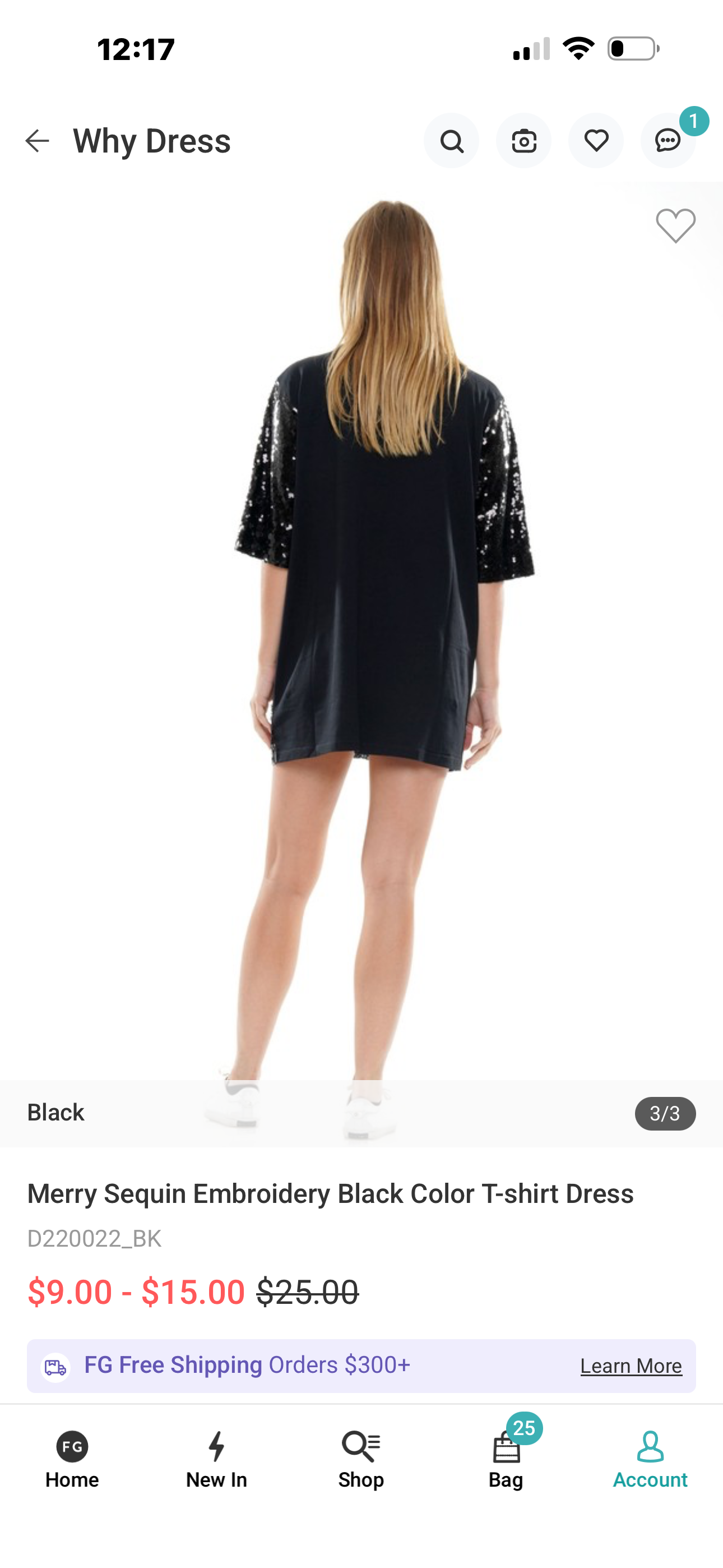 Merry sequin embroidery Black color t-shirt dress